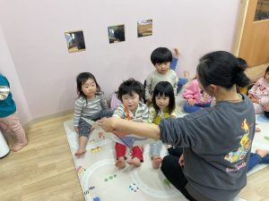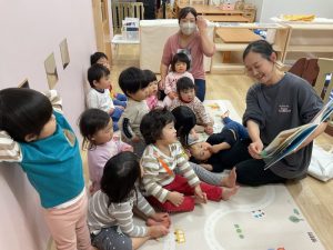 お昼寝の前にはみんなで絵本を見ます!
