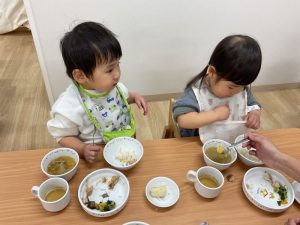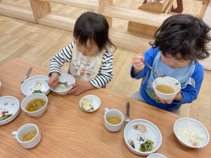 つき組さんは、バンバン持ちが上手です。2月からお箸のチャレンジ!