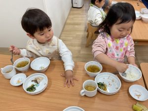 つき組さんは、バンバン持ちが上手です。2月からお箸のチャレンジ!