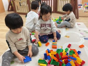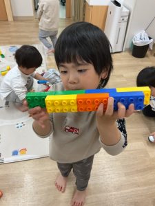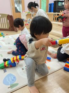 「何を作ろうかな?」とブロック遊びに夢中♪