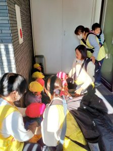 外階段から2階に避難することが出来ました。子ども達も保育士の声掛けで迅速に避難体制をとることが出でき、日頃の訓練の大切さを改めて感じました!