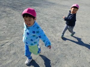 まずはみんなでかけっこ!沢山身体を動かすと楽しいね!
