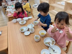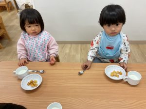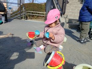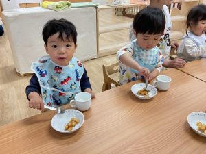 「今日はどんぐりなかったよ」と元気に帰園した子ども達。