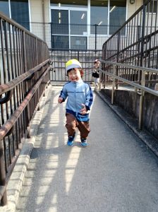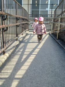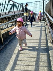 スロープを走っていると「飛行機~」みんなでお空を見上げます。