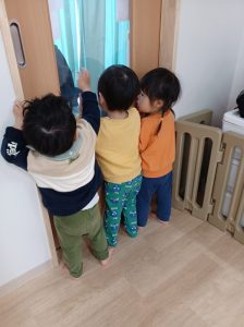 職員が出勤すると着替えの最中「バンバン!せんせい~」
