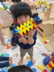 「見て〜、作ったよ」と作品を見せてくれました。