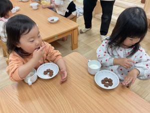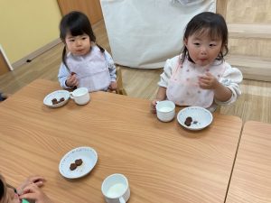 午後おやつは、栄養士さんが豆乳ブラウニーを