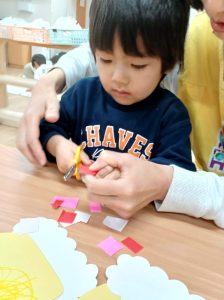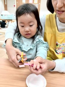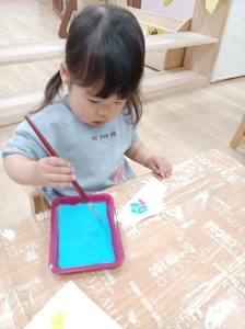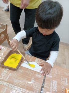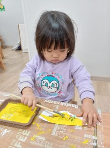 「あれ~?クレヨンがでてきたよ」とはじき絵を楽しみます。