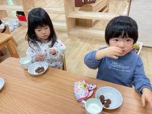 午後おやつは、栄養士さんが豆乳ブラウニーを