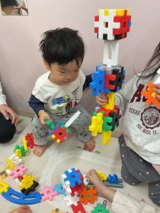 自分で「何を作ろうかな〜」と見立てて遊ぶ子ども達♪