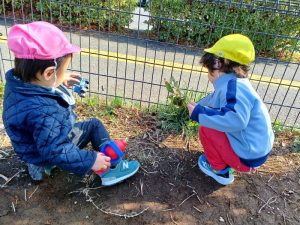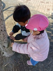「ありさん、いるかな〜」「木の実見つけたよ。」