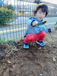 「大きな葉っぱ見つけた〜」