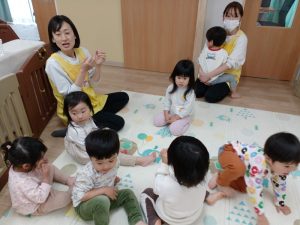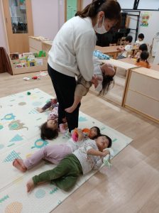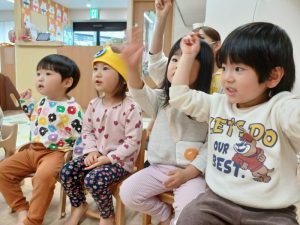 次は「ふくすけさ~ん」のお歌に合わせてみんなで足の指を動かします。