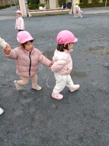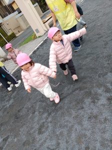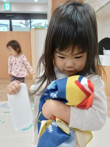 「ロンドン橋渡れ、さあ~渡れ・・・」とわらべうたを楽しみます。