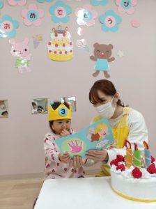 みんなでピアノに合わせて「たんたん誕生日♪」のお歌を元気一杯歌いました。