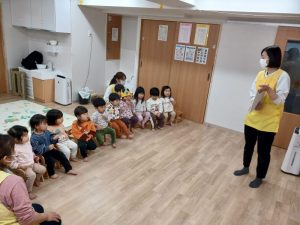 次は「ふくすけさ~ん」のお歌に合わせてみんなで足の指を動かします。