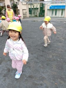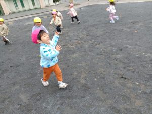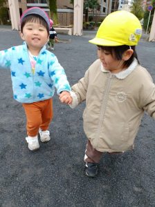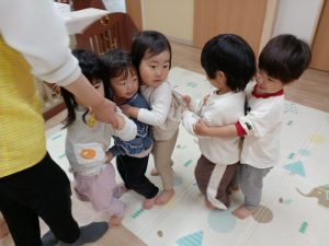 「ロンドン橋渡れ、さあ~渡れ・・・」とわらべうたを楽しみます。