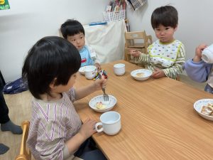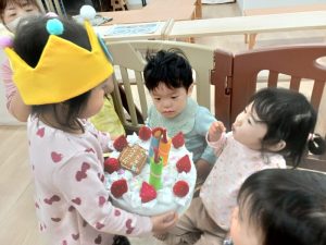 みんなでピアノに合わせて「たんたん誕生日♪」のお歌を元気一杯歌いました。