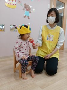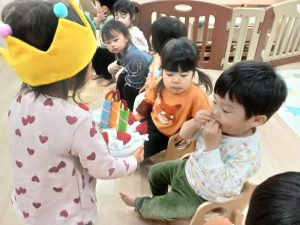 2月のお誕生会を行いました♪みんなで揃って「はい、ポーズ」
