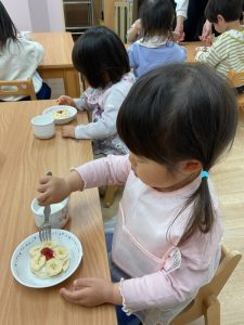 午後おやつは、誕生日のお花プチパンケーキ🌸
