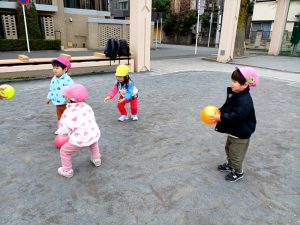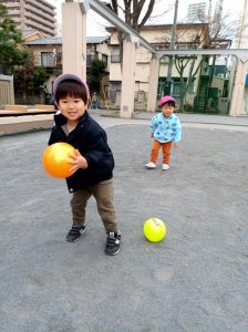 つき組さんは上大岡公園でボール遊び!「やった~!」