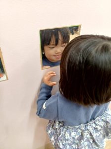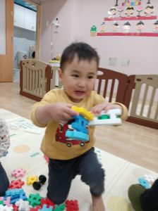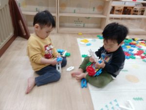 自分で作ったブロックを鑑賞中。くつろぎタイム♪