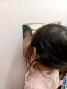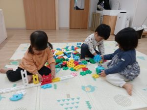 自分で作ったブロックを鑑賞中。くつろぎタイム♪