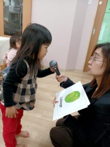 ボールが最後になったお友だちが単語カードにタッチして答えます!
