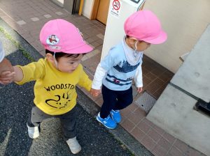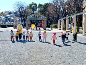 「あたたかいね~」とみんなで上大岡公園までお散歩♪