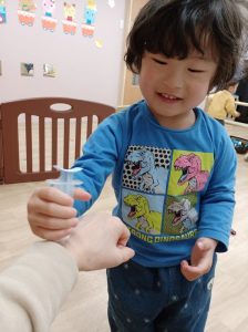 「注射しまーす。」
