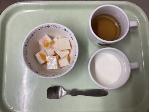 みかん牛乳寒天、牛乳、お茶
