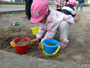 大好きなお砂場でアイスクリーム作り‼︎
