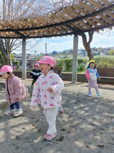 みんなで公園を探索したり、かけっこをして遊びました。