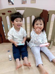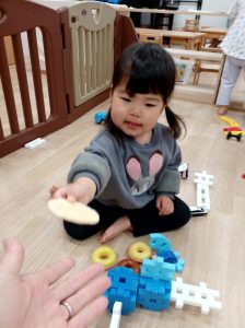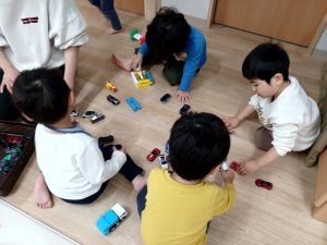 今日も朝から車遊びやブロック遊びを楽しみました。