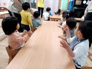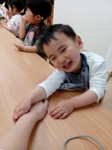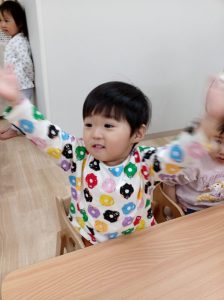 やおやさんの手遊びを楽しみます。