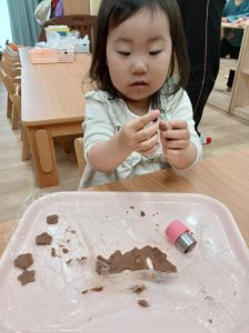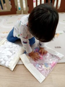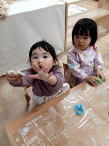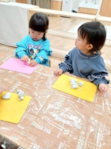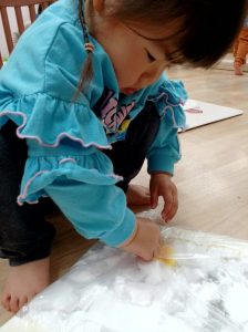 「ぐにゅぐにゅする。」感触遊びを楽しみます。