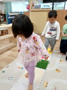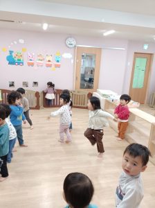 つき組さんが食育の間に、ほし組さんは運動遊び。
