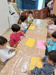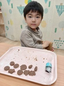 「みて、へびさんできたよ。」「おだんごできたよ。」
