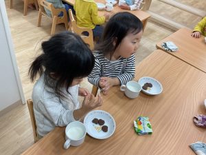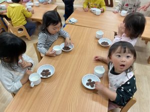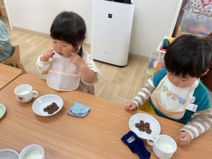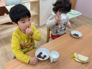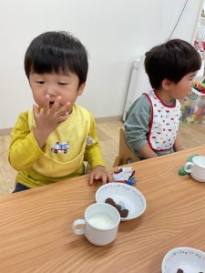 午後のおやつには、ココアクッキーを美味しく頂きました。