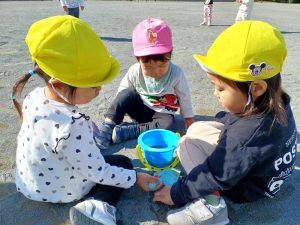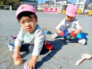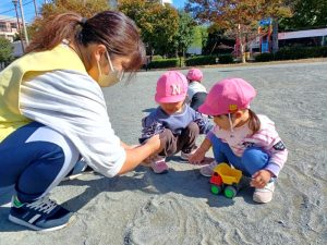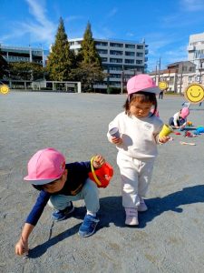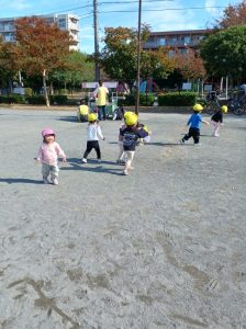 自由遊びの時間では、広場をかけっこしたり、どんぐり拾いを楽しみました♪