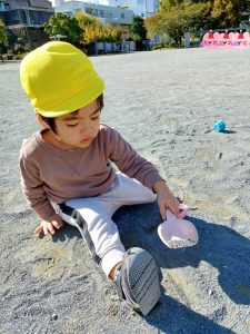 お砂場遊び、みんな真剣は表情で黙々と遊んでいます!